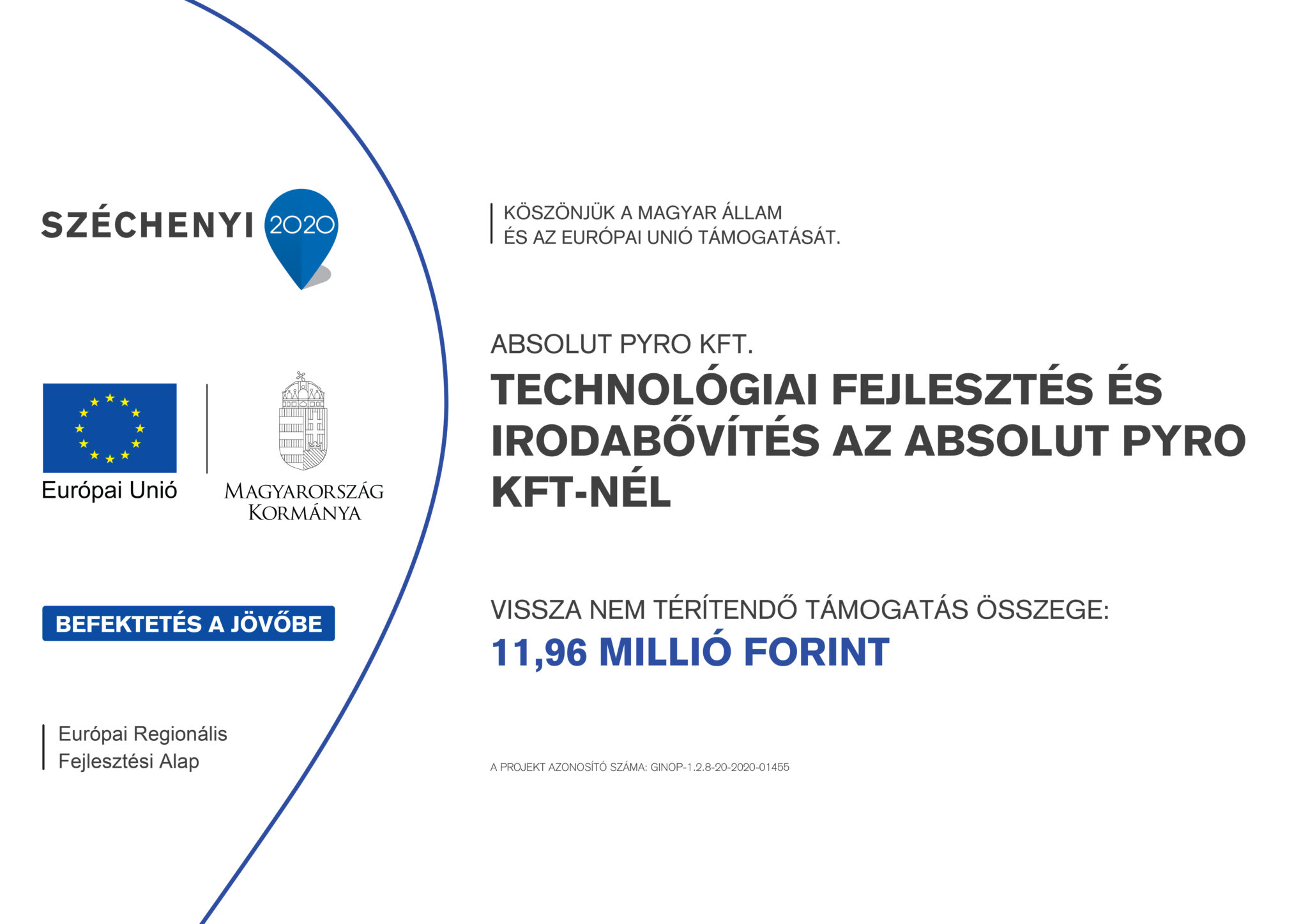 - A projekt címe: Technológiai fejlesztés és irodabővítés az Absolut Pyro Kft-nél